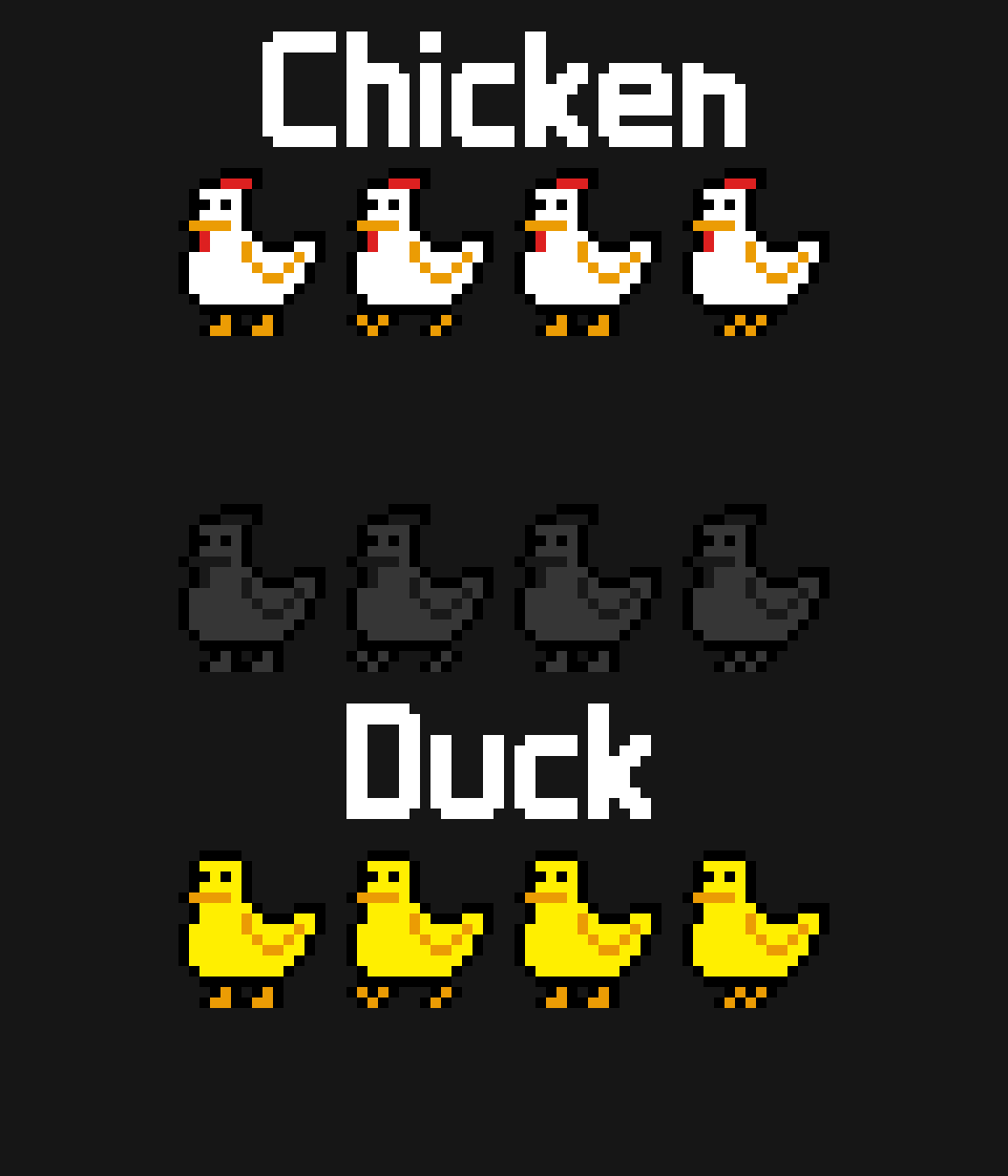 You'll get three properly scaled, transparent gifs of the ducks and chickens walking with a standing sprite inside